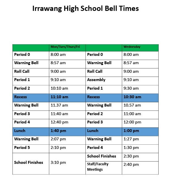 Our school day is structured around a clear timetable. We have set times for learning sessions, activities and lunch. Understanding the bell times helps students get the most out of each part of the day.